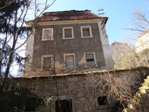 nieruchomości gruntowej zabudowanej budynkiem mieszkalnym jednorodzinnym i budynkiem gospodarczym położonym w Młyńsku nr 77 gmina Gryfów Śląski, działka nr 360/3. Dojazd do nieruchomości odbywa się drogą asfaltową. Nieruchomość posiada bezpośredni dostęp do drogi publicznej gminnej (dz. nr 364 dr i 366 dr), jednak na dzień oględzin działka drogowa nr 364 dr miała nawierzchnię trawiastą i nie była wykorzystywana jako droga dojazdowa do nieruchomości, a faktyczny wjazd na nieruchomość odbywał się z drogi leśnej, niebędącej drogą publiczną (dz. nr 706 Ls). Nieruchomość składa się z dwóch działek ewidencyjnych – nr 360/3 o powierzchni 1,55 ha i nr 360/2 o powierzchni 0,1100 ha, jednakże przedmiotem niniejszej licytacji jest jedynie działka nr 360/3. Działka nr 360/3 o powierzchni 1,55 ha ma kształt nieregularny wieloboczny, ukształtowanie terenu jest płaskie, nasłonecznienie właściwe. Działka jest porośnięta trawą i częściowo drobnym drzewostanem nie stanowiącym lasu według ewidencji gruntów. W południowo-wschodniej części działki teren jest użytkowany jako przydomowy obszar rekreacyjny. Działka jest uzbrojona w media infrastruktury technicznej – energia elektryczna, wodociąg, kanalizacja lokalna. Na działce nr 360/3 zlokalizowany jest budynek mieszkalny jednorodzinny z częścią gospodarczą, wolnostojący, dwukondygnacyjny (parter, piętro), częściowo podpiwniczy, ze strychem nieużytkowym, wzniesiony w II połowie XIX wieku. Technologia murowana z cegły i kamienia oraz drewniana. Powierzchnia zabudowy 255 m2. Budynek wpisany jest do Gminnej Ewidencji Zabytków. Układ funkcjonalny budynku obejmuje: Parter: ganek: 10,20 m2, korytarz: 13,60 m2, kuchnia: 21,30 m2, pokój: 9,50 m2, łazienka: 13,60m2, razem parter: 68,20 m2.Piętro:komunikacja, kuchnia: 13,80 m2, ganek: 10,20 m2, pokój: 16,00 m2, pokój: 12,00 m2, pokój: 22,10 m2, pokój: 14,00 m2, razem piętro: 88,10 m2. Łączna powierzchnia użytkowa mieszkalna budynku na podstawie obmiarów z natury w świetle okładzin i wypraw wewnętrznych ścian budynku mierzona w poziomie podłogi wynosi 156,30 m2. Wysokość pomieszczeń na parterze od 1,82 m do 2,46 m, na piętrze od 2,00 m do 2,10 m. Do części mieszkalnej budynku przylegają części gospodarcze – jednokondygnacyjne murowane i drewniane, o powierzchniach zabudowy 58 m2 i 56 m2. Obok budynku mieszkalnego posadowiony jest budynek gospodarczy jednokondygnacyjny, częściowo murowany i częściowo drewniany o powierzchni zabudowy 38 m2. Stan techniczny zabudowań mierny. Nieruchomość położona na terenie, dla którego nie ma obowiązującego miejscowego planu zagospodarowania przestrzennego. Zgodnie z Uchwałą nr XXXVI/178/17 Rady Miejskiej Gminy Gryfów Śląski z dnia 30 czerwca 2017r. w sprawie uchwalenia zmiany studium uwarunkowań i kierunków zagospodarowania przestrzennego miasta i gminy Gryfów Śląski dla wyodrębnionych obszarów położonych w granicach administracyjnych miasta i gminy Gryfów Śląski, jest to teren oznaczonym symbolem studium M I – strefa zabudowy mieszkalno-zagrodowej, R – grunty orne, W – wody otwarte. Budynek wpisany jest do gminnej ewidencji zabytków. Dział III księgi wieczystej o nr KW JG1S/00011933/5 zawiera wpis dożywotniej i nieodpłatnej służebność mieszkania na rzecz:-Joanny Heleny Małek, córki Lechosława i Haliny, polegająca na prawie korzystania z jednego pokoju na piętrze (pokój pierwszy przechodni po lewej stronie schodów) wraz z prawem korzystania z pomieszczeń wspólnych: kuchni, łazienki, korytarza, ganku, piwnicy, klatki schodowej na piętro, strychu i pomieszczeń gospodarczych w części gospodarczej budynku, -Marzeny Małek córki Lechosława i Haliny polegająca na prawie korzystania z jednego pokoju na piętrze (drugiego za pokojem pierwszym) wraz z prawem korzystania z pomieszczeń wspólnych: kuchni, łazienki, korytarza, ganku, piwnicy, klatki schodowej na piętro, strychu i pomieszczeń gospodarczych w części gospodarczej budynku;-Jowity Małek, córki Lechosława i Haliny polegająca na prawie korzystania z jednego pokoju na piętrze (na wprost schodów) wraz z prawem korzystania z pomieszczeń wspólnych: kuchni, łazienki, korytarza, ganku, piwnicy, klatki schodowej na piętro, strychu i pomieszczeń gospodarczych w części gospodarczej budynku;-Bogusława Ciupak, syna Antoniego i Heleny polegająca na prawie korzystania z jednego pokoju na piętrze (po prawej stronie od schodów) wraz z prawem korzystania z pomieszczeń wspólnych: kuchni, łazienki, korytarza, ganku, piwnicy, klatki schodowej na piętro, strychu i pomieszczeń gospodarczych w części gospodarczej budynku; (Bogusław Ciupak zmarł). Wartość prawa służebności na rzecz Joanny Małek przez okres 31 lat wynosi 130 000,00 zł, wartość prawa służebności na rzecz Marzeny Małek przez okres 37 lat wynosi 121 000,00 zł, a wartość prawa służebności na rzecz Jowity Małek przez okres 34 lat wynosi 125 000,00 zł. Dla przedmiotowej nieruchomości Sąd Rejonowy IV Wydział Ksiąg Wieczystych w Lwówku Śl. prowadzi księgę wieczystą o nr JG1S/00011933/5. Nieruchomość oszacowana jest na kwotę: 310 000,00 zł. Cena wywoławcza w powyższej licytacji wynosi: trzy czwarte wartości oszacowania tj. kwotę: 232 500,00 zł. Warunkiem udziału w przetargu jest utworzenie indywidualnego konta w systemie teleinformatycznym. Zgodnie z art. 9865 § 1 przystępujący do przetargu obowiązany jest złożyć rękojmię w wysokości 1/10 części sumy oszacowania tj. 31 000,00 zł, najpóźniej na dwa dni robocze przed rozpoczęciem przetargu na rachunek bankowy komornika: PKO BP S.A. 38 1020 2124 0000 8102 0058 3054. Za datę złożenia rękojmi przyjmuje się dzień uznania rachunku bankowego komornika. Przetarg odbywa się w drodze elektronicznej i zakończy się w dniu 05.03.2026r. o godzinie 14:30. W ciągu dwóch tygodni przed licytacją wolno oglą